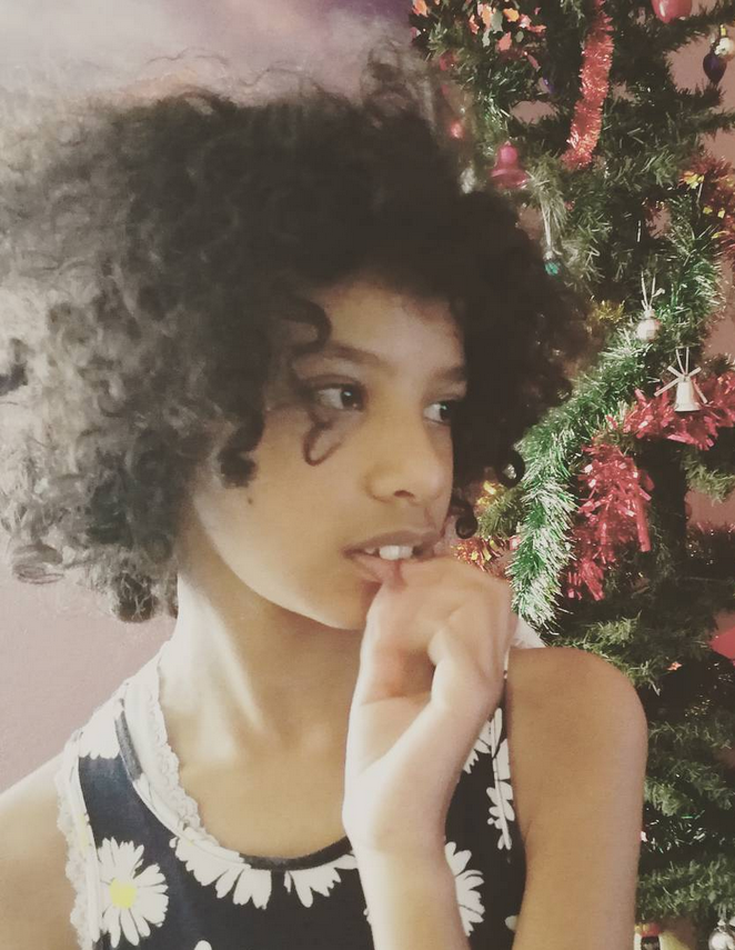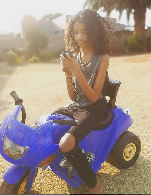 Foto from her daughter Shareez when she was about 10 years old sitting on kind of plastic bobby car.